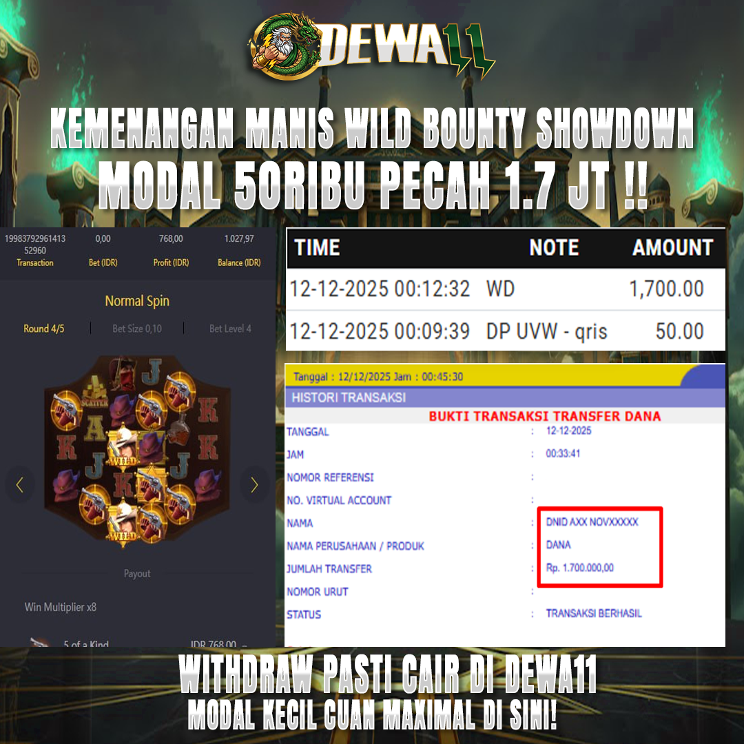Gabung bersama DEWA11 dan Dapatkan kesempatan jackpot sensasional dalam 15 menit separate bukti banner ini bukan sekedar janji hanya Depo 50k Withdraw 1,7 juta hari ini.